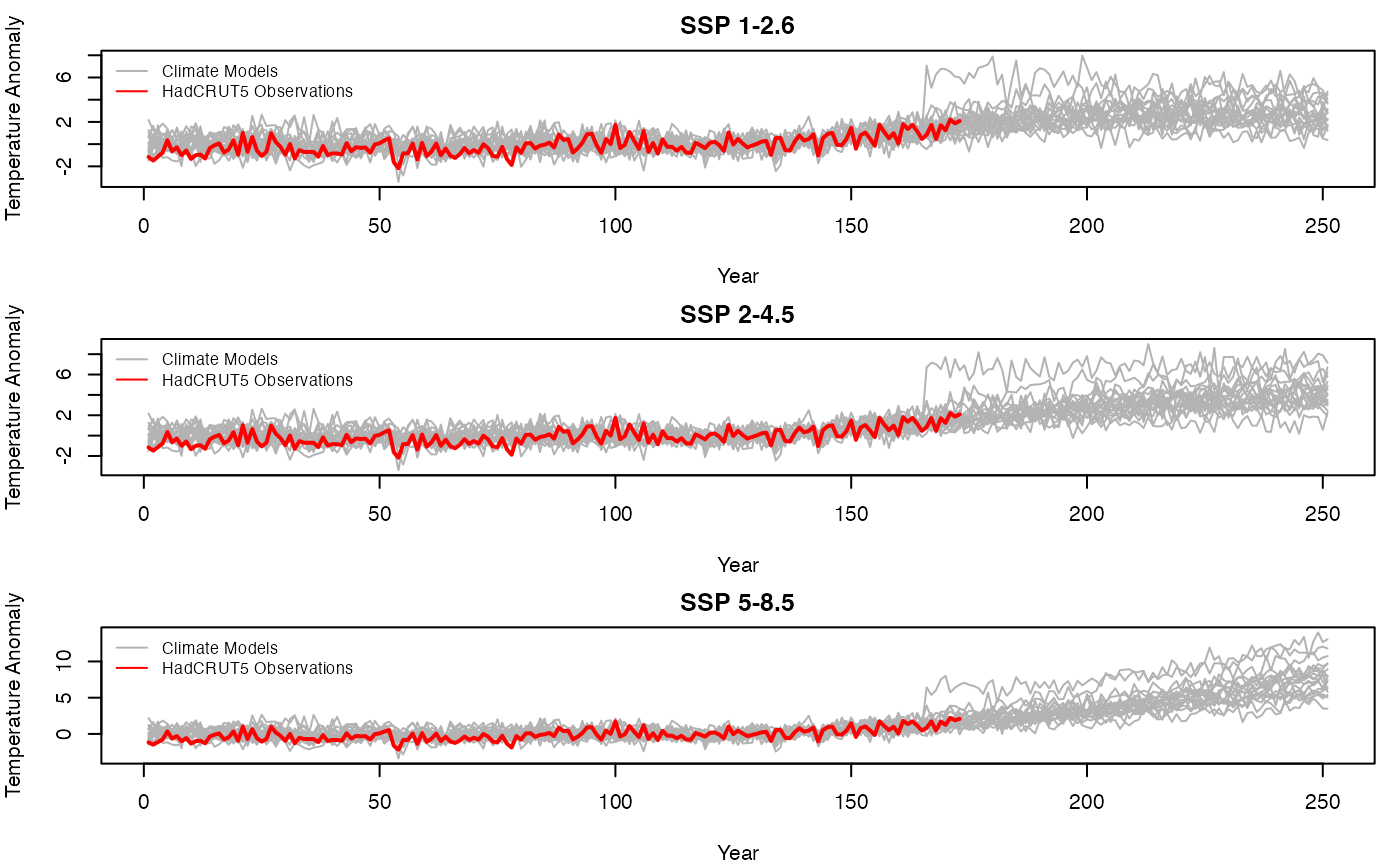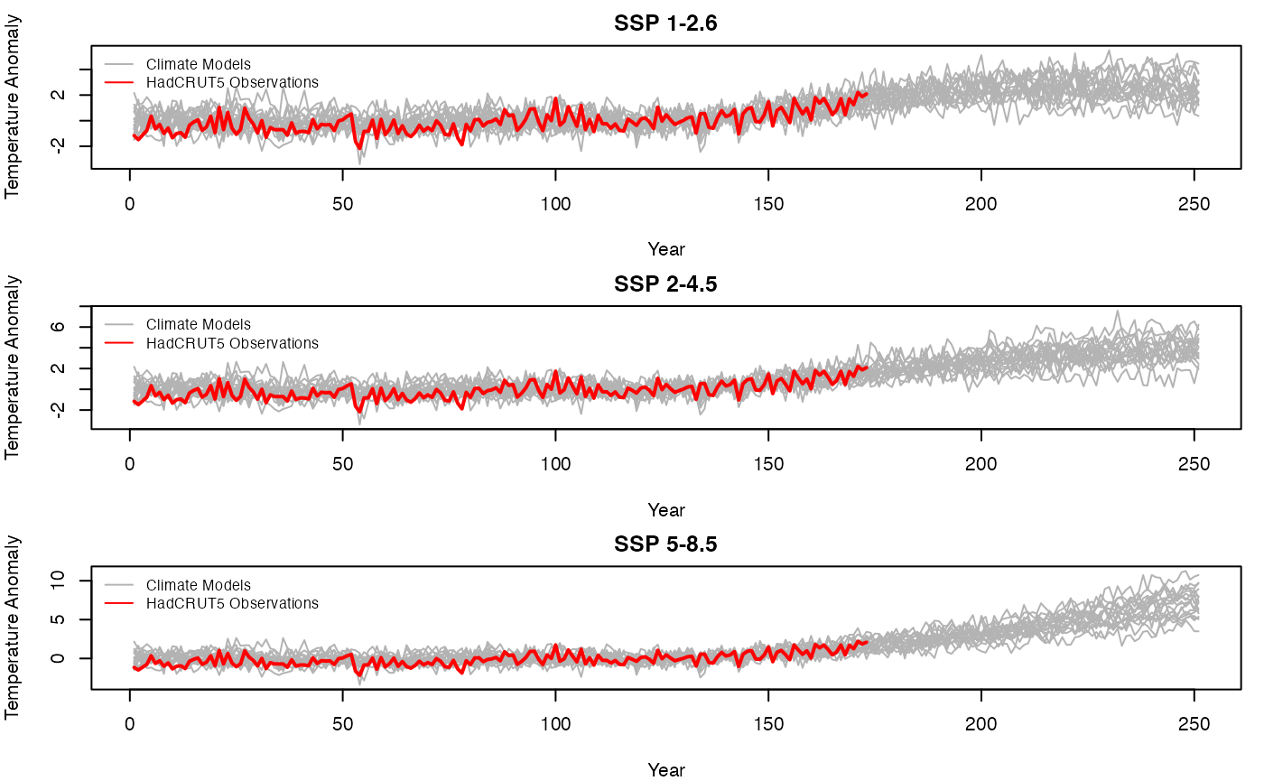 legend = c("Climate Models", "HadCRUT5 Observations"),